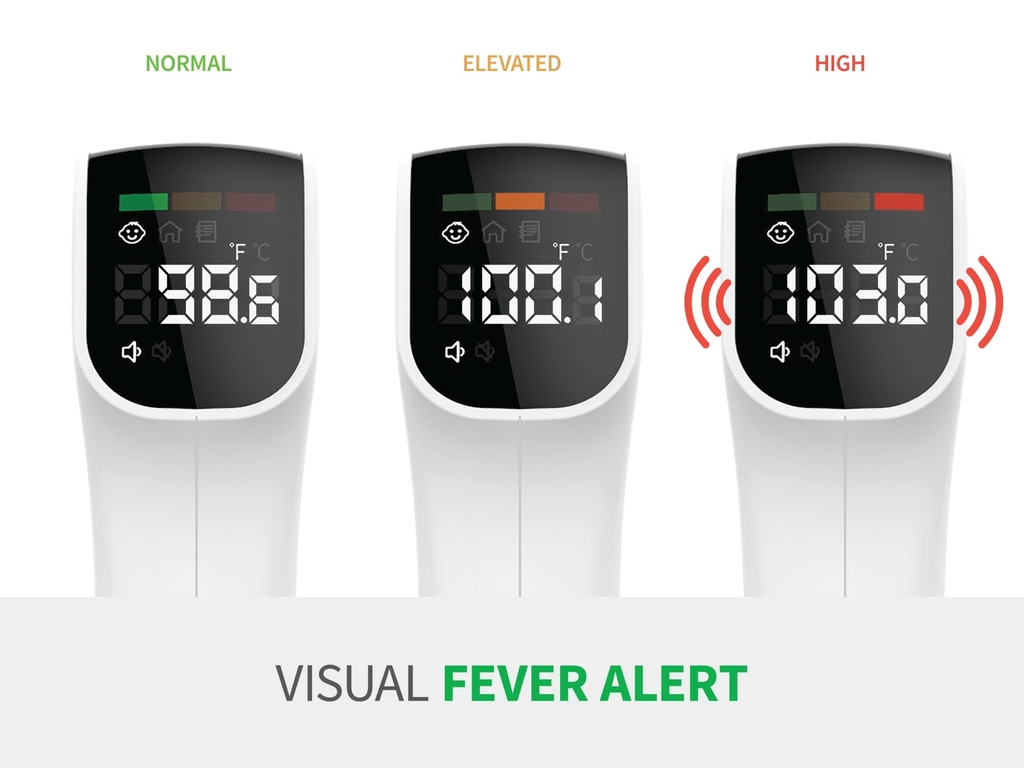 Ngay lập tức xem một người có đang bị sốt hay không. Cảnh báo Sốt được tích hợp sẽ tự động hiển thị nhiệt độ của một người bằng chỉ báo màu xanh lá cây, cam hoặc đỏ để bạn ngay lập tức biết họ có nhiệt độ bình thường, tăng hay cao.