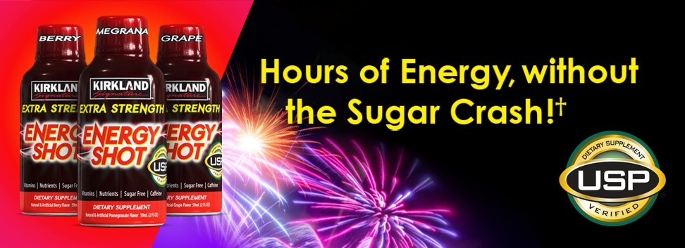 Kirkland Signature Extra Strength Energy Shot là loại thức uống có hương vị tuyệt vời, tiện lợi, ít calo, không chứa carb, được tăng cường với nhiều chất dinh dưỡng được thiết kế để cung cấp cho bạn năng lượng tức thì kéo dài hàng giờ mà không bị hỏng đường. (C)*