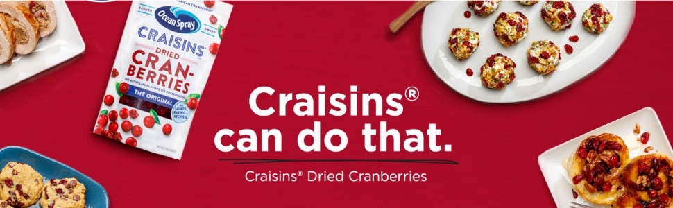 Ocean Spray Craisins Whole Dried Cranberries - Quả nam việt quất sấy khô giảm đường với ít đường hơn 50%. Không chứa gluten, không chứa đậu phộng, không chứa chất béo và cholesterol, giảm đường. Craisins cũng là một nguồn cung cấp chất xơ trong trái cây ổn định lâu dài. Có thể thêm chúng vào món salad, bột yến mạch, sữa chua, bánh nướng xốp và hơn thế nữa.(C)