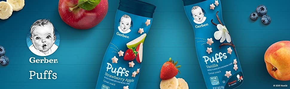 Gerber Puffs Cereal Snack, Strawberry Apple - Bánh ăn dặm dành cho bé trên 8 tháng vị dâu tây táo là một món ăn nhẹ thơm ngon và bổ dưỡng được thiết kế đặc biệt cho trẻ mới tập ăn của bạn. Hình dạng ngôi sao, có kết cấu có thể tan chảy dễ dàng hòa tan, dễ nhai và nuốt và có hình dạng vừa phải phù hợp để trẻ dễ cầm nắm. Không biến đổi gen, không có hương vị, màu sắc hoặc chất làm ngọt nhân tạo.