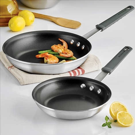 Tramontina 2-piece Fry Pan with Non-stick Silicone Grips - Chảo chống dính được sản xuất cho nhà bếp chuyên nghiệp, nhưng dễ dàng thích ứng để sử dụng trong gia đình và phi thương mại. Lớp phủ chống dính ECLIPSE giúp bạn dễ dàng nấu nướng và dọn dẹp. Tương thích với bếp gas, điện và bếp bằng thủy tinh gốm.