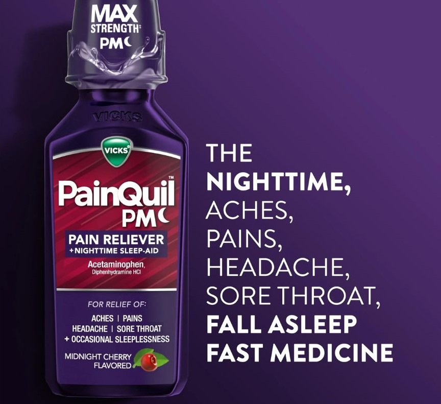 Vicks PainQuil PM Pain Reliever & Sleep Support Aid, Liquid Cherry - PainQuil PM bắt đầu hoạt động nhanh chóng để giảm chứng mất ngủ vào ban đêm + đau đầu, đau họng và đau nhức nhẹ. PainQuil PM là siro giảm đau ban đêm có công suất tối đa với 1000mg acetaminophen mỗi liều để giảm đau và 50mg diphenhydramine HCl mỗi liều để điều trị chứng mất ngủ. Siro giảm đau ban đêm dành cho người lớn này có hương vị anh đào thơm ngon và được phát triển bởi các chuyên gia đáng tin cậy tại Vicks.(W)