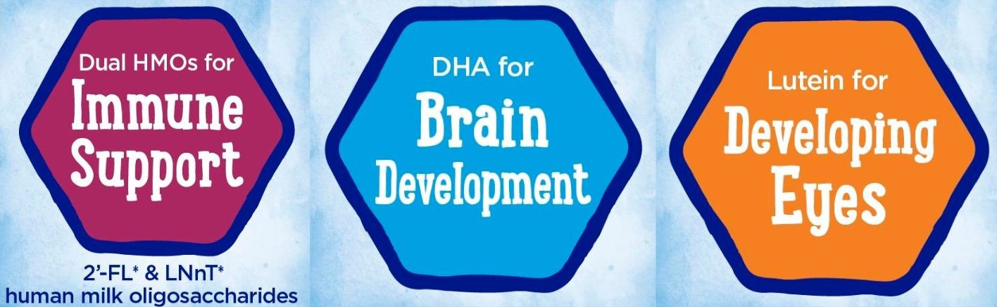Oligosacarit sữa mẹ (HMO, không phải từ sữa mẹ) là prebiotic hỗ trợ khả năng miễn dịch và sức khỏe tiêu hóa của bé bằng cách khuyến khích sự phát triển của vi khuẩn có lợi trong ruột. ProCare đã tăng cường 2'-FL HMO lên mức phù hợp với sữa mẹ và bổ sung LNnT, một loại HMO khác xuất hiện tự nhiên trong sữa mẹ. Kirkland Signature chọn chúng vì các nghiên cứu cho thấy hai loại HMO dồi dào này phối hợp tốt hơn với nhau để hỗ trợ sự thoải mái về tiêu hóa và phát triển hệ miễn dịch của bé.