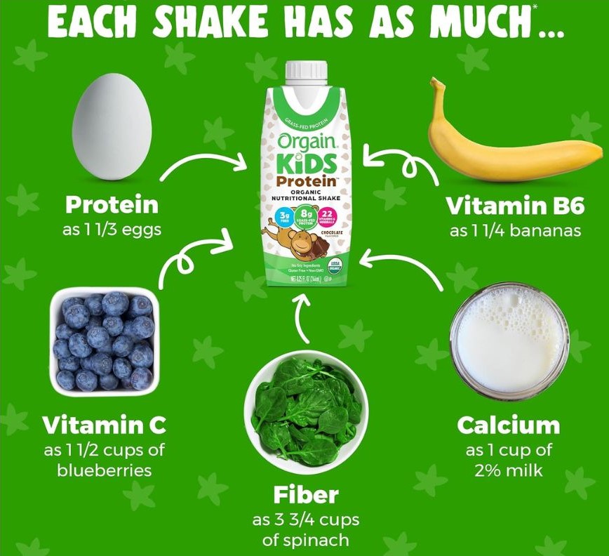 Sữa lắc của Orgain có lượng đường ít hơn 25% so với các loại sữa lắc dinh dưỡng giàu protein dành cho trẻ em hàng đầu khác, vì vậy bạn có thể cảm thấy hài lòng về những gì bạn đưa vào cơ thể con mình. Vì là sản phẩm của Orgain nên mọi thứ đều sạch sẽ, nghĩa là mỗi khẩu phần sữa dinh dưỡng hữu cơ dành cho trẻ em bao gồm 10 loại trái cây & bột rau hữu cơ và hỗ trợ hệ thống miễn dịch với các vitamin bao gồm vitamin B12, C, D & kẽm.
