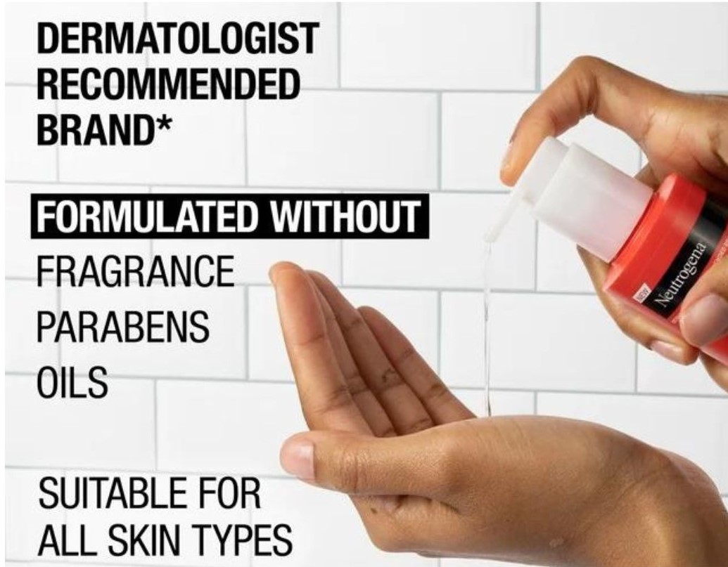 Neutrogena Stubborn Texture Daily Acne Facial Cleanser with Salicylic Acid - Sữa rửa mặt trị mụn hàng ngày Neutrogena giúp làm sạch làn da khỏi những nốt mụn cứng đầu và làm mịn rõ rệt kết cấu không đồng đều. Với thiết kế dành cho làn da dễ bị mụn trứng cá, loại sữa rửa mặt trị mụn này đã được chứng minh khoa học với phức hợp axit cấp độ bác sĩ da liễu, bao gồm 1% axit salicylic (BHA), giúp loại bỏ mụn trứng cá cứng đầu và giúp ngăn ngừa mụn.
