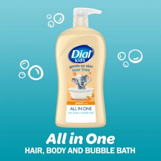 Dial Kids 3-in-1 Body+Hair+Bubble Bath, Peach - Sữa tắm Dial hương đào cho trẻ em sẽ mang lại cho bé làn da mềm mại và mịn màng. Được sản xuất dành riêng cho cha mẹ, đây là sản phẩm tắm gội, gội đầu và tạo bọt tất cả trong một, dịu nhẹ cho da, không gây cay mắt và sẽ mang đến cho bé những giờ tắm vui vẻ. Được kiểm nghiệm bởi các bác sĩ da liễu nhi khoa, sản phẩm không gây dị ứng và không chứa paraben, phthalate và silicone. Hãy yên tâm về sữa tắm trẻ em này, vì nó an toàn và dịu nhẹ cho mọi bé từ đầu đến chân. Được chứng nhận không thử nghiệm trên động vật theo Chương trình Leaping Bunny. Chai sữa tắm Dial Kids có thể tái chế 100%, không chứa BPA và được làm từ 50% nhựa tái chế sau tiêu dùng (trừ vòi bơm). Gói này chứa 32 ounce sữa tắm Dial Kids All in One.(W)