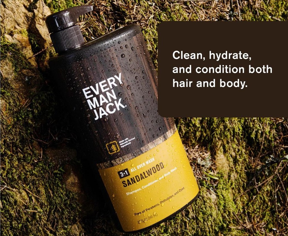 Every Man Jack Sandalwood Men's 3-in-1 All Over Wash - Sữa tắm gội toàn thân 3 trong 1 giúp làm sạch, dưỡng ẩm cho cả tóc và cơ thể với các chất hoạt động bề mặt có nguồn gốc tự nhiên từ dừa, protein đậu nành và lô hội để có mái tóc chắc khỏe hơn và làn da ngậm nước.(W)