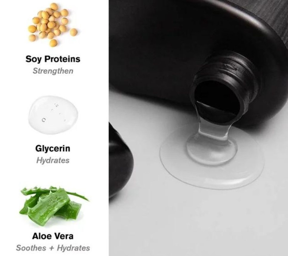 Được làm từ nhiều thành phần có nguồn gốc tự nhiên như chất hoạt động bề mặt có nguồn gốc từ dừa để làm sạch, protein đậu nành giúp củng cố và dưỡng tóc và lô hội giúp dưỡng ẩm và làm dịu da.