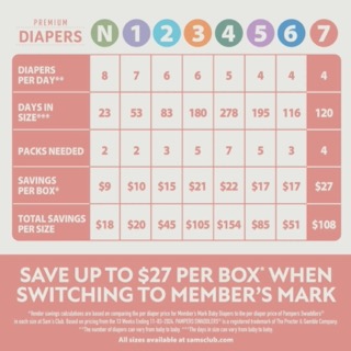 Member's Mark Premium Baby Diapers - Tã cao cấp Member's Mark giờ đây mềm mại và thấm hút tốt hơn trước. Trải nghiệm sự mềm mại như nhung và lõi siêu thấm hút, giúp bé luôn khô ráo và thoải mái suốt 12 giờ, cả ngày lẫn đêm.(S)