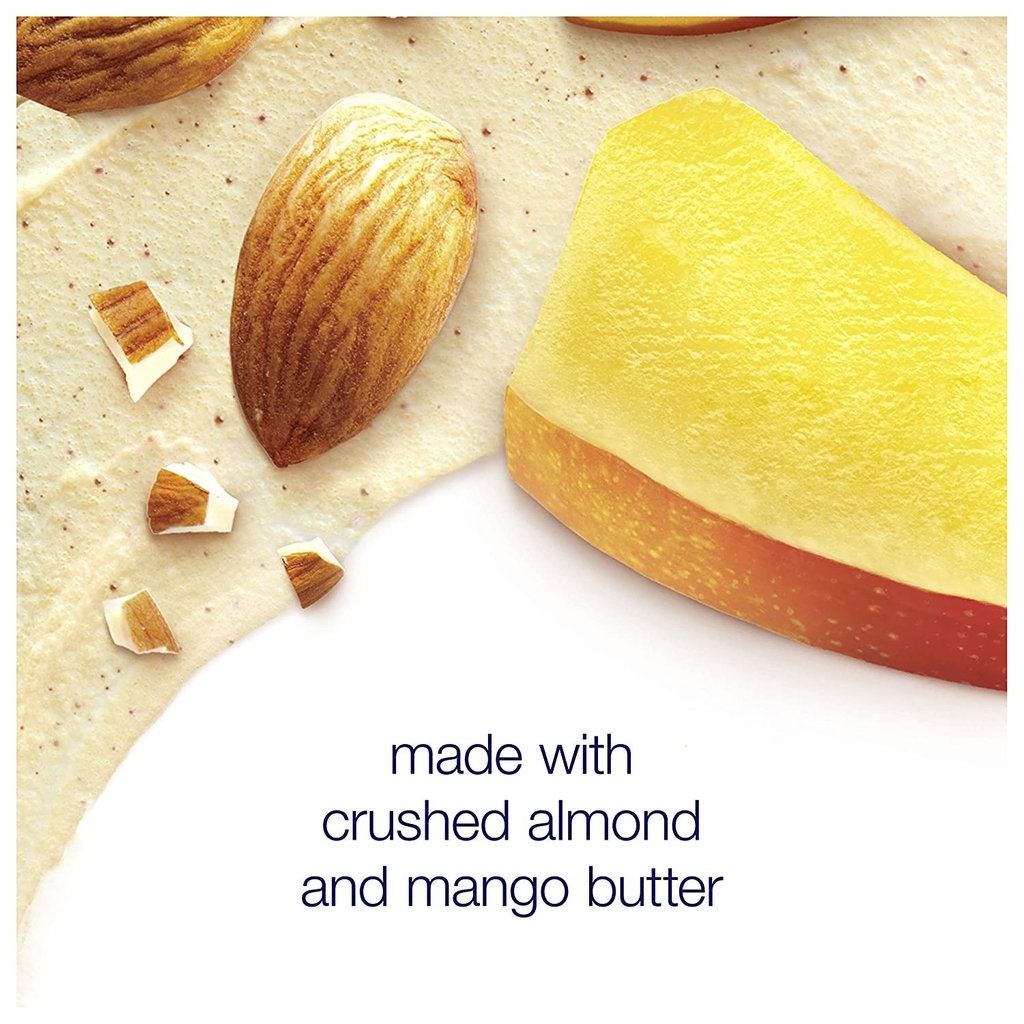 Dove Exfoliating Body Polish Body Scrub, Almond & Mango Butter với hạnh nhân nghiền và bơ xoài hoạt động nhẹ nhàng để loại bỏ lớp da khô trên bề mặt và để lộ lớp da sáng khỏe bên dưới. Được thiết kế để sử dụng thường xuyên hoặc hàng ngày, tẩy tế bào chết và làm bóng da này sử dụng các thành phần được tìm thấy trong tự nhiên như hạnh nhân nghiền nát và bơ xoài xa hoa để giữ cho làn da mịn màng, dưỡng ẩm và điều hòa sau mỗi lần sử dụng.