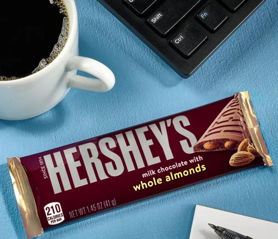Hershey's Milk Chocolate with Almonds, King Size - Thanh kẹo sô cô la sữa Hershey's được làm từ loại sô cô la sữa thơm ngon, béo ngậy với những thanh hạnh nhân tạo nên một hương vị thơm ngon hoàn hảo cho dù thưởng thức một mình hay chia sẻ với những người thân yêu.Những thanh kẹo sô cô la sữa với hạnh nhân nguyên hạt Hershey's này là món quà được yêu thích trong những dịp đặc biệt và hàng ngày trong năm, bạn có thể đổ đầy bát kẹo Halloween, làm túi quà cho Ngày lễ tình nhân và dự trữ những giỏ lễ Phục sinh với những món kẹo sô cô la thơm ngon này.(C,S)
