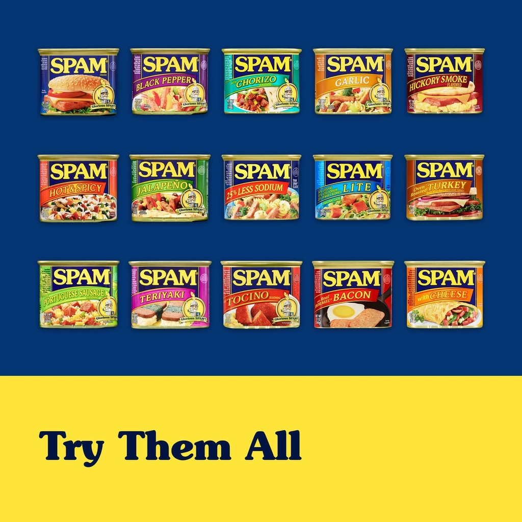 Spam Hickory Smoke Flavored tạo cho nó một hương vị xông khói thực sự. Vì vậy, bạn có thể dự trữ kệ đựng thức ăn của mình với hương vị hun khói thơm ngon mà không để lại mùi như khu cắm trại. Tuy nhiên, một vài lon sẽ hoàn toàn phù hợp với phần còn lại của thức ăn cắm trại của bạn, nếu bạn thích điều đó. Hãy sáng tạo với thương hiệu SPAM và trải nghiệm hương vị ngay hôm nay!