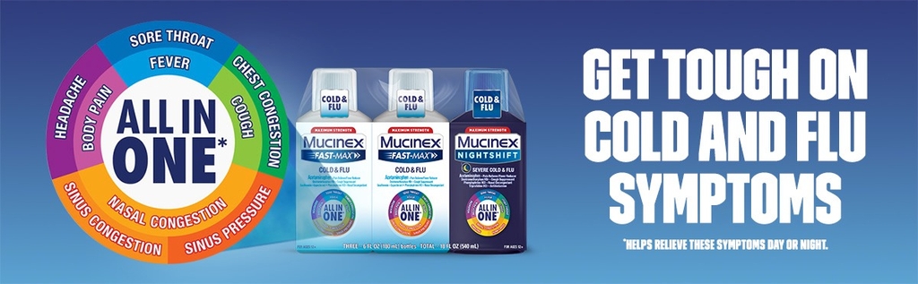 Công thức Mucinex Maximum Strength Fast-Max Cold & Flu (All in one) and Nightshift Severe Cold & Flu giúp giảm tạm thời các triệu chứng tồi tệ nhất của bạn. Fast-Max giảm sốt và giảm đau nhức, ho và đau họng. Dịch chuyển ban đêm có tác dụng làm giảm nghẹt mũi và tức ngực cộng với sổ mũi và hắt hơi để bạn có thể dễ dàng đi vào giấc ngủ.