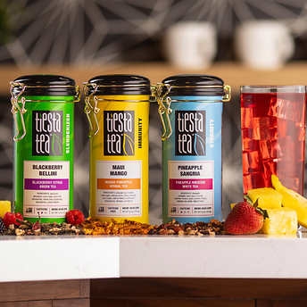 Tiesta Tea 3-Tin Loose Leaf Tea Favorites Variety ~ Trà thảo mộc, trà xanh, trà trắng dạng hộp thiếc với 3 hương vị, mẫu trà thảo mộc này bao gồm 1 hộp là 1 hương vị khác nhau như: Xoài Dứa, BlackBerry Bellini, Pineapple Sangria. Từ thảo mộc và lá trà xanh, trà trắng túi trà cao cấp của được đóng gói trong các gói giấy tươi để cung cấp một cốc chất lượng cao, từ loại trà giúp thư giãn mỗi buổi tối sau một ngày mệt mỏi đến loại trà giúp bạn có năng lượng làm việc mỗi buổi sáng.
