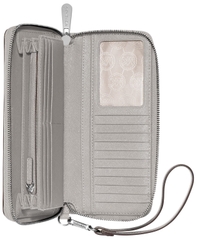 Michael Kors Jet Set Travel Continental Wallet, Pearl Grey/Silver - ví cầm tay được làm từ da cao cấp với phần cứng và logo bên ngoài tông màu bạc. Ví có có 1 túi zip, 3 túi kiểu đàn accordion và 10 khe cắm thẻ.