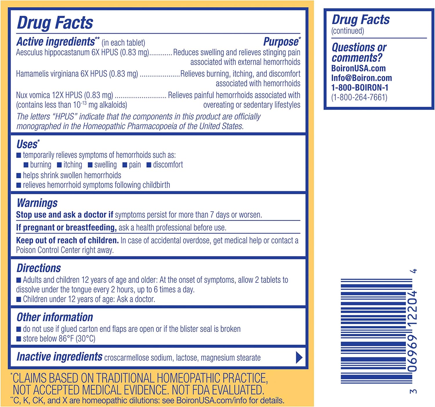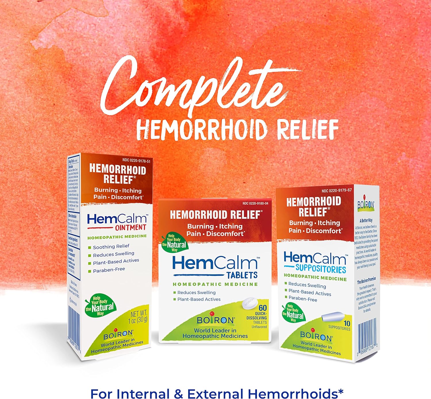 Boiron Hemcalm hemorrhoid Relief Tablets - Viên nén HemCalm của Boiron cung cấp tác dụng toàn thân cho cả bệnh trĩ nội và trĩ ngoại, được sản xuất với các hoạt chất có nguồn gốc từ thực vật giúp giảm sưng tấy đồng thời giảm các triệu chứng như nóng rát, ngứa, đau và khó chịu. Viên nén HemCalm tan trong miệng mà không cần nước, mang lại sự lựa chọn thuận tiện và kín đáo để sử dụng trong ngày, tại nơi làm việc hoặc khi đi du lịch.(A)