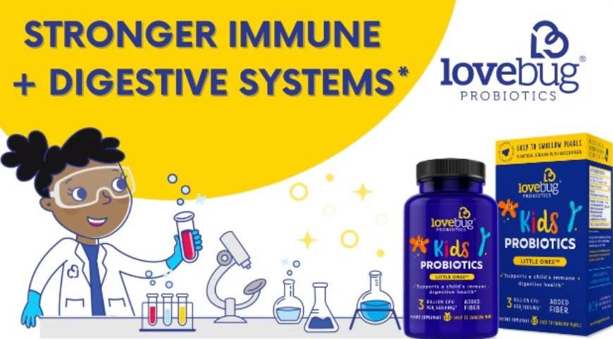 LoveBug Probiotics Kids' Probiotics Multi Strain Capsules: Viên nhai bổ sung Probiotics đa chủng men vi sinh. Không biến đổi gen, thuần chay, không có hương vị hoặc màu nhân tạo Không chứa 8 chất gây dị ứng chính,Không cần làm lạnh. Giúp cân bằng cho quá trình tiêu hóa và chức năng miễn dịch. Việc bổ sung thêm men vi sinh có thể giúp tái tạo hệ vi khuẩn đường ruột của trẻ, hỗ trợ hấp thụ chất dinh dưỡng và hỗ trợ khả năng phòng vệ tự nhiên của trẻ, xây dựng nền tảng cho sức khỏe suốt đời.