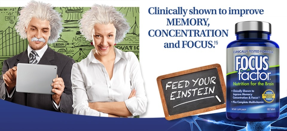 FOCUSfactor cung cấp dinh dưỡng cho não. Công thức độc quyền của nó chứa các chất dinh dưỡng thần kinh hoạt tính sinh học được lựa chọn đặc biệt cho khả năng giúp nuôi dưỡng và nuôi dưỡng não bộ cũng như hỗ trợ trí nhớ của bạn. Ngoài ra, toàn bộ lượng vitamin và khoáng chất của nó rất đầy đủ, nó có thể thay thế cho loại vitamin tổng hợp hiện tại của bạn!