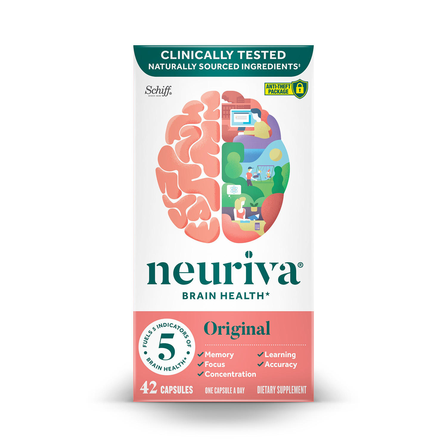 Neuriva Brain Supplement Original là viên uống bổ sung hiệu suất não đột phá. Nhóm Neuriva đặt mục tiêu làm cho thế giới trở nên lành mạnh và tươi sáng hơn bằng cách phát triển một sản phẩm có thể giúp bạn có trí não tốt hơn. Neurofactor, thành phần chính trong Neuriva, là một chiết xuất hoàn toàn tự nhiên được cấp bằng sáng chế toàn bộ trái cây từ cây Coffea Arabica đã được chứng minh lâm sàng để tăng mức độ của Yếu tố dưỡng thần kinh có nguồn gốc từ não (BDNF).