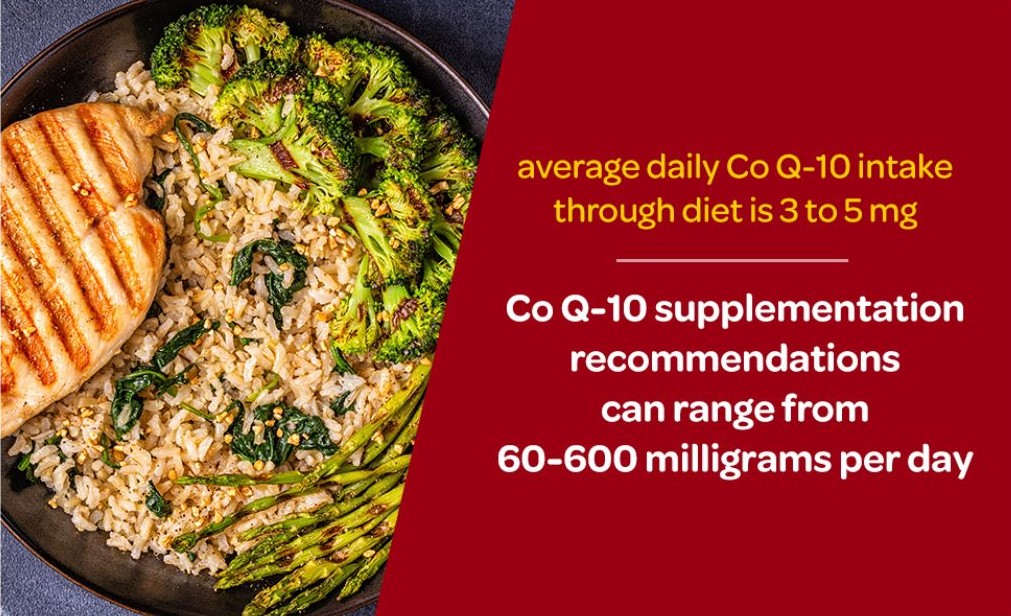 Lượng Co Q-10 trung bình hàng ngày thông qua chế độ ăn uống là 3 đến 5 mg gần như không đủ để bổ sung lượng bị mất do suy giảm tuổi tác hoặc thuốc theo toa. Tùy thuộc vào nhu cầu của bạn, khuyến nghị bổ sung Co Q-10 có thể dao động từ 60-600 miligam mỗi ngày để tăng nồng độ mô.