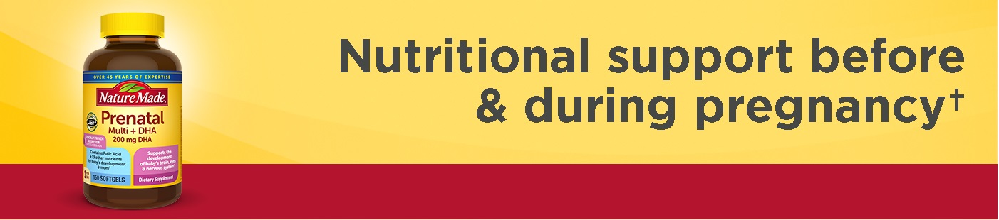 Nature Made Prenatal Multi + DHA chứa vitamin tổng hợp lý tưởng cho các bà mẹ tương lai và phụ nữ đang trong giai đoạn chuẩn bị mang thai đang tìm kiếm một chất bổ sung trước khi sinh với sự hấp thụ axit folic và sắt đã được chứng minh lâm sàng, cũng như axit docosahexaenoic (DHA), một omega quan trọng -3 axit béo. Bổ sung vitamin tổng hợp trước khi sinh hàng ngày trong thai kỳ là rất quan trọng để giúp hỗ trợ sức khỏe của người mẹ khi mang thai và sự phát triển của bé.