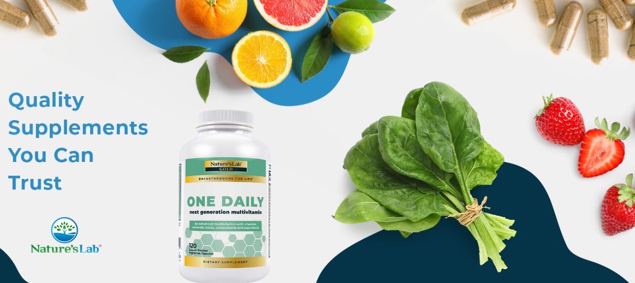 Nature's Lab One Daily Multivitamin - Là loại vitamin tổng hợp hàng ngày tiện lợi, dễ uống, kết hợp 21 loại vitamin và khoáng chất thiết yếu với các chất dinh dưỡng chống oxy hóa bổ sung. Nature's Lab Gold One Daily Multivitamin là sản phẩm cao cấp có mức độ hiệu quả và dạng thành phần hiệu quả, chất lượng cao nhằm mang lại lợi ích thực sự cho sức khỏe của bạn.(C)