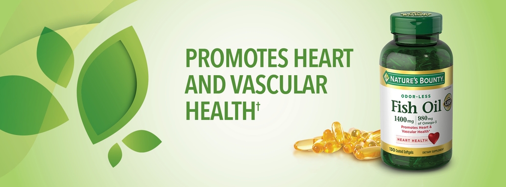 Nghiên cứu cho thấy rằng việc tiêu thụ axit béo omega-3 EPA và DHA có thể hỗ trợ làm giảm nguy cơ mắc bệnh tim mạch vành. Một khẩu phần của Nature’s Bounty® Fish Oil cung cấp 900 gram axit béo omega-3 EPA và DHA. Người ta ước tính rằng hơn 1 trong 3 người Mỹ trưởng thành có ít nhất một loại bệnh tim mạch, chẳng hạn như huyết áp cao, bệnh tim mạch vành hoặc đột quỵ. Có nhiều yếu tố nguy cơ mắc bệnh tim mạch bao gồm hút thuốc, cholesterol cao, lối sống ít vận động hoặc không hoạt động và dinh dưỡng kém.