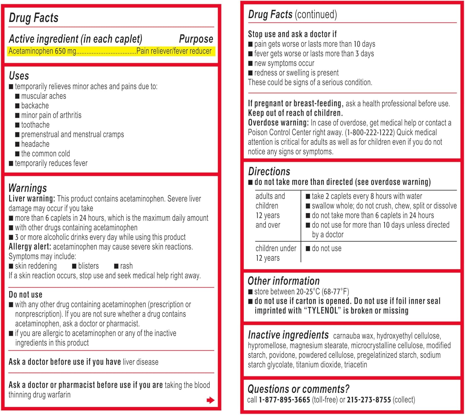 Tên sản phẩm: Tylenol 8 Hour Acetaminophen 650 mg Extended Release Caplets