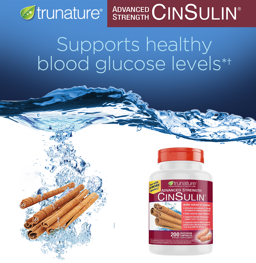 Các thành phần này kết hợp với nhau trong trunature® CinSulin®, một phần quan trọng trong lối sống lành mạnh của bạn. CinSulin dành cho những người quan tâm về lượng đường trong máu, mức độ có thể bị ảnh hưởng bởi các yếu tố như cân nặng, chế độ ăn uống, tập thể dục, hút thuốc, huyết áp, tiền sử gia đình và căng thẳng.