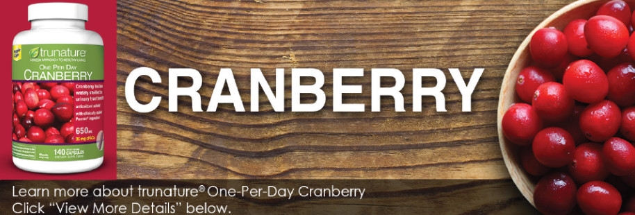 Trunature Pacran Cranberry 650 mg chứa một hỗn hợp độc quyền kết hợp toàn bộ bột quả nam việt quất (Pacran) với chiết xuất nam việt quất được tiêu chuẩn hóa để cung cấp tối thiểu 36 mg nam việt quất proanthocyanidins, cPAC, chỉ trong một viên nang chay mỗi ngày.