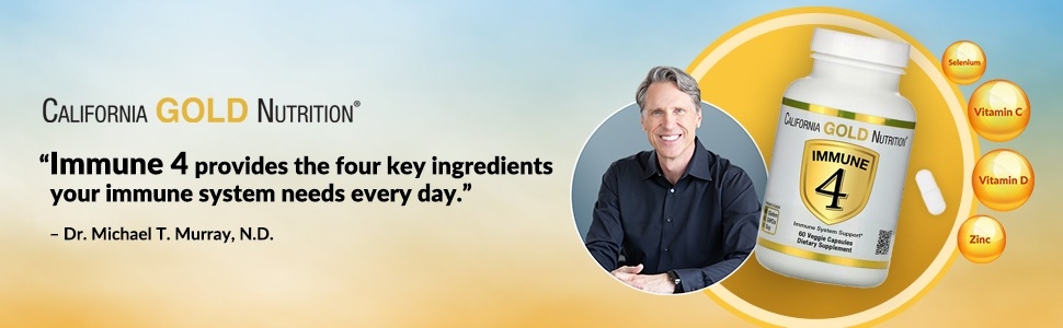 California Gold Nutrition Immune 4, Immune System Support - Viên uống hỗ trợ hệ thống miễn dịch chứa 4 thành phần chính: Vitamin C, Vitamin D, Kẽm và Selen, giúp bảo vệ sức khỏe của bạn bằng cách cung cấp thêm hỗ trợ miễn dịch khi bạn cần nhất, đã được nghiên cứu lâm sàng để giúp thúc đẩy một hệ thống miễn dịch khỏe mạnh.