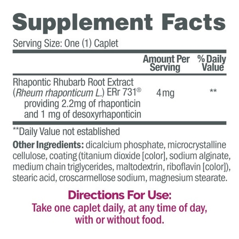 Viên uống cân bằng nội tiết tố Estroven Complete Multi-Symptom Menopause Relief chứa chiết xuất rễ cây đại hoàng Rhapontic dựa trên thực vật đã được chứng minh lâm sàng (ERr 731), đã được các bác sĩ tin tưởng trong hơn 20 năm để làm giảm các triệu chứng mãn kinh, do tính an toàn và hiệu quả của nó.