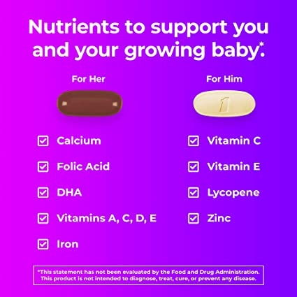 One a Day Men's & Women's Pre-Pregnancy Multivitamin - chứa hai loại vitamin tổng hợp hoàn chỉnh khác nhau được thiết kế đặc biệt để cung cấp hỗ trợ dinh dưỡng cho các cặp vợ chồng đang cố gắng có em bé. Vitamin tổng hợp dành cho phụ nữ trước khi sinh One A Day là nhãn hiệu sản phụ khoa số 1 được khuyên dùng trên nhãn hiệu vitamin tổng hợp trước khi sinh.