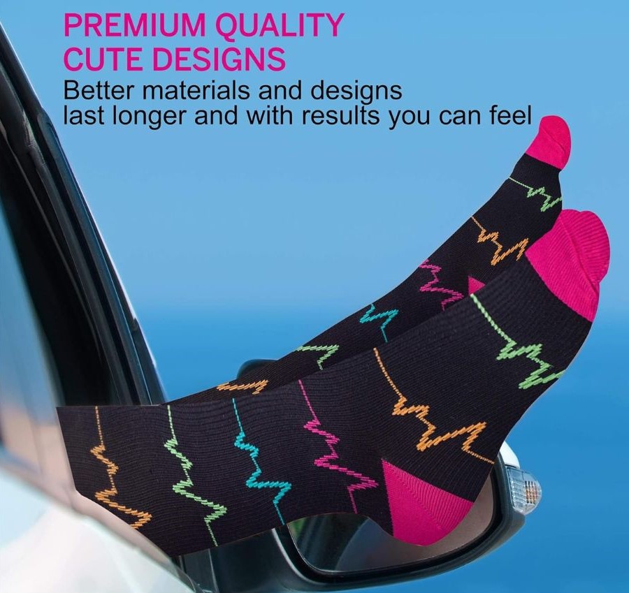 Levsox Compression Socks Women and Men - Vớ nén Levsox có thiết kế bắp chân rộng, dễ mặc và không cắt vào chân, chất liệu vải nén mịn, cung cấp áp suất thích hợp và tuổi thọ cao. Loại vớ này có áp lực tăng dần từ đỉnh đến mắt cá chân, áp lực cao nhất ở phần mắt cá chân, thúc đẩy tuần hoàn với lực nén 20-30 mmHg, giúp giảm đau và sưng tấy. Vớ cũng có thiết kế nhiều hình ảnh dễ thương, vui nhộn, giúp tăng thêm niềm vui cho công việc của bạn.(A)