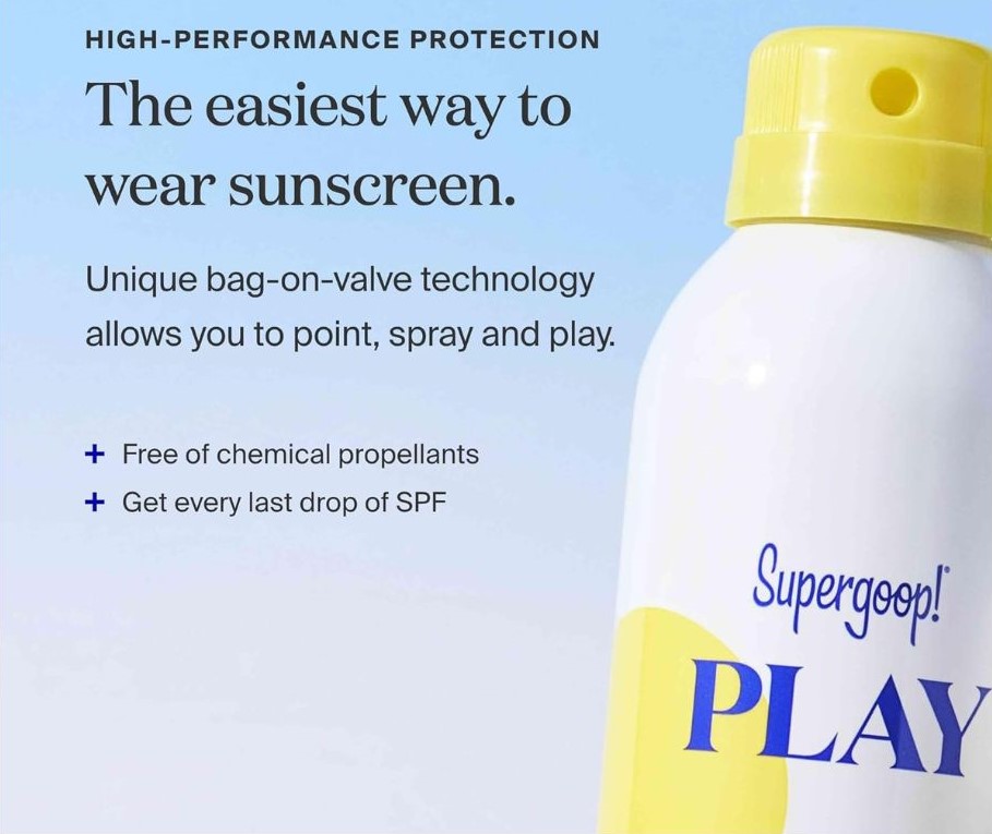 Xịt khoáng chống nắng SPF Supergoop được tạo ra để giúp việc thoa kem chống nắng trở nên dễ dàng hơn. Bạn có thể thoa lên da khô hoặc ướt và xịt ở mọi góc độ nhờ công nghệ túi trên van độc đáo, giúp SPF không chứa chất đẩy hóa học và hiệu quả cho đến giọt cuối cùng.