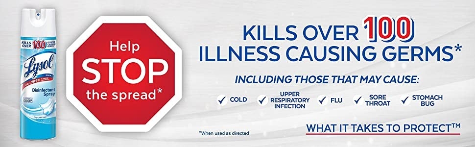 Xịt khử trùng Lysol Disinfectant Spray, Crisp Linen được thử nghiệm và chứng minh có thể tiêu diệt 99,9% vi rút và vi khuẩn, bao gồm COVID-19 và vi khuẩn gây mùi, tiêu diệt hơn 100 vi trùng gây bệnh, bao gồm cả vi rút cảm lạnh và cúm. Dạng xịt tác dụng nhanh này khử trùng các bề mặt tiếp xúc cứng, không xốp và làm vệ sinh các bề mặt.